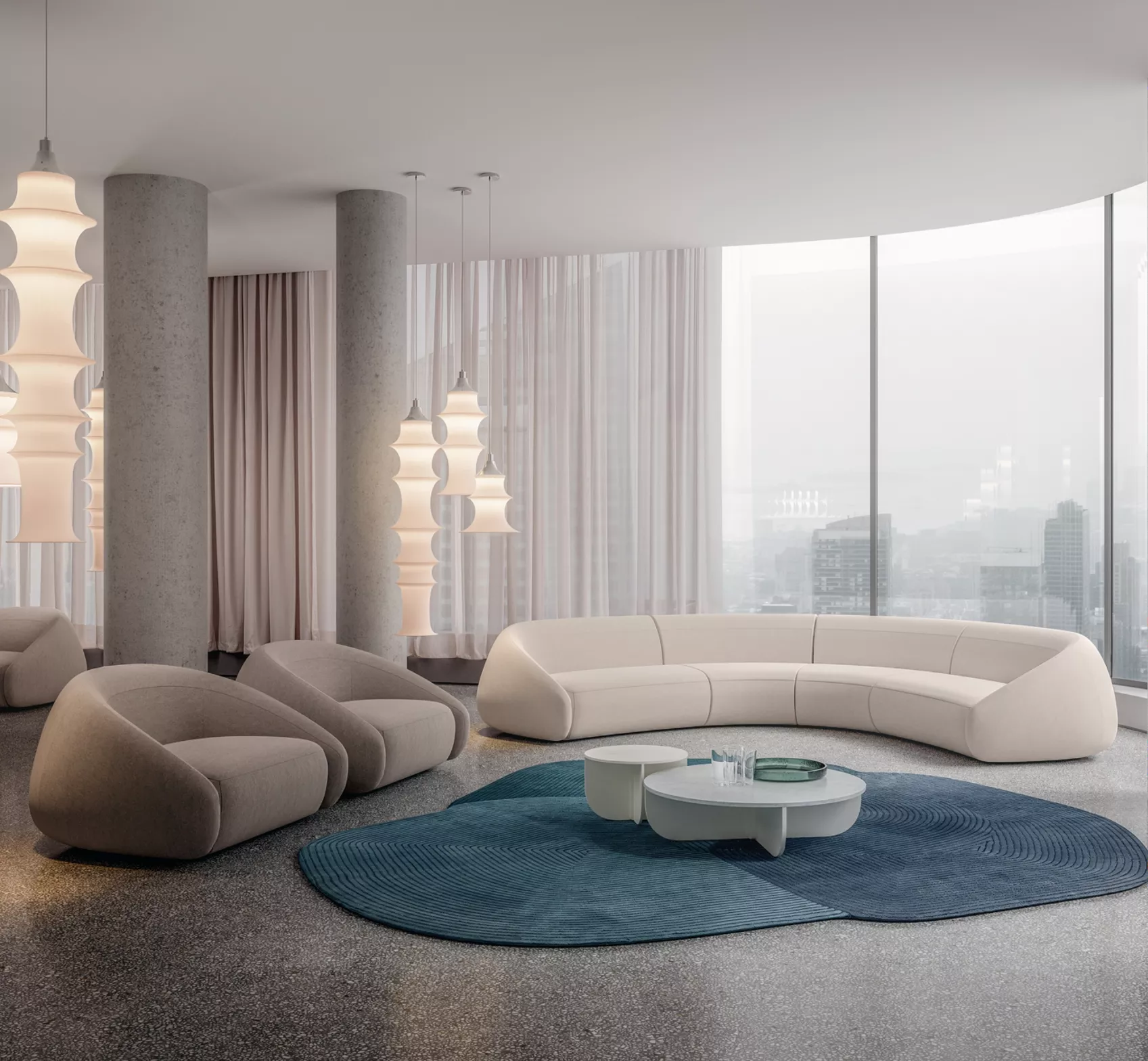 The Apper system by Antonio Rodriguez (2024) is designed for durability and style, featuring a reinforced frame suitable for public area use. It incorporates flame-retardant polyurethane foam and undeformable polyurethane foam of varying densities for enhanced comfort and resilience. Additionally, the piece is finished with reinforced stitching supported by carbon fibre, ensuring long-lasting performance and structural integrity.