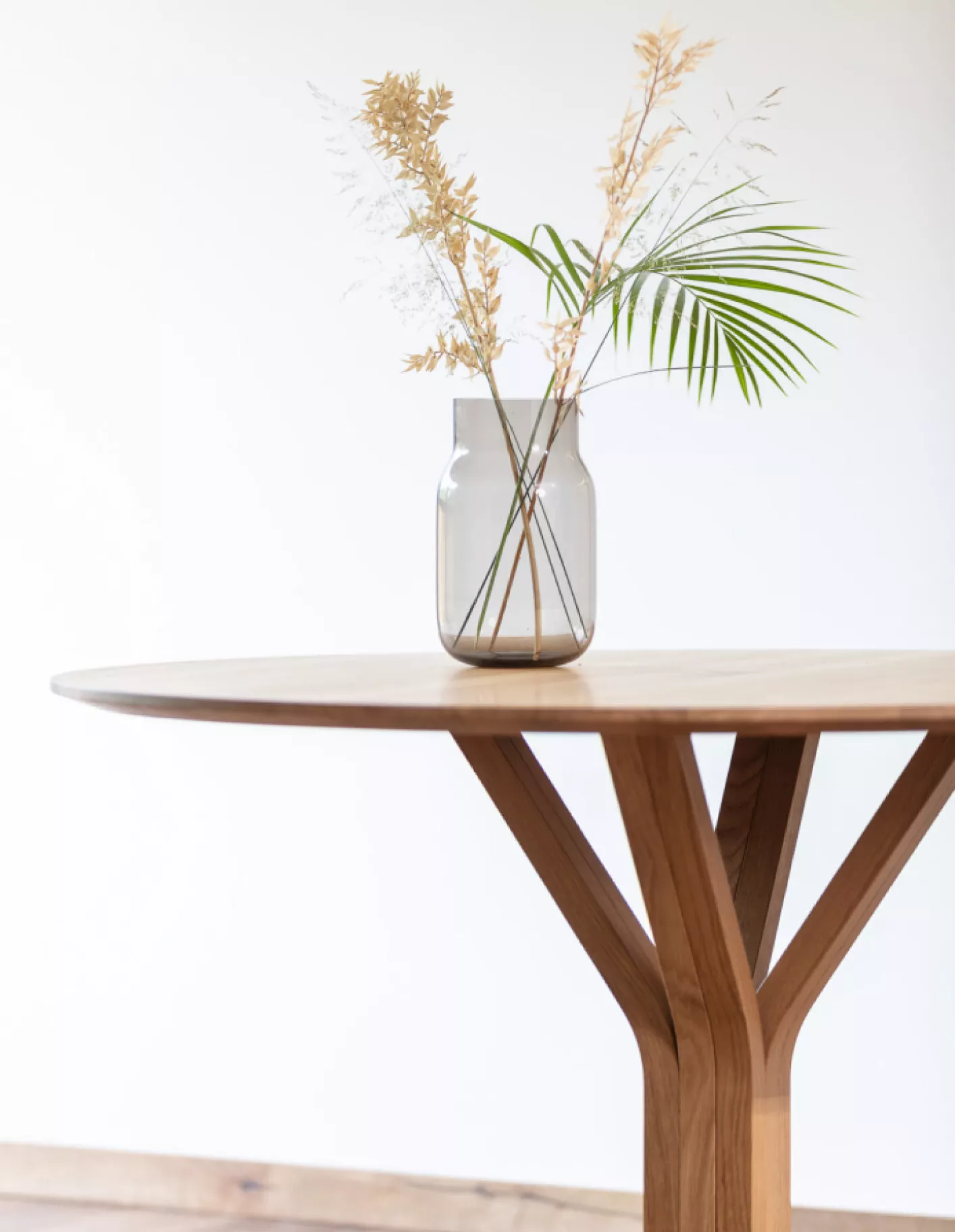 The Bloom table, designed by Arik Levy, features a sculptural base inspired by a flower in bloom, bringing a vibrant, luxurious focal point to any space. Crafted using a reimagined wood bending technique, it combines elegance with functionality—its design accommodates chairs neatly beneath a round or square tabletop, making it ideal for homes, restaurants, cafés, or bars.