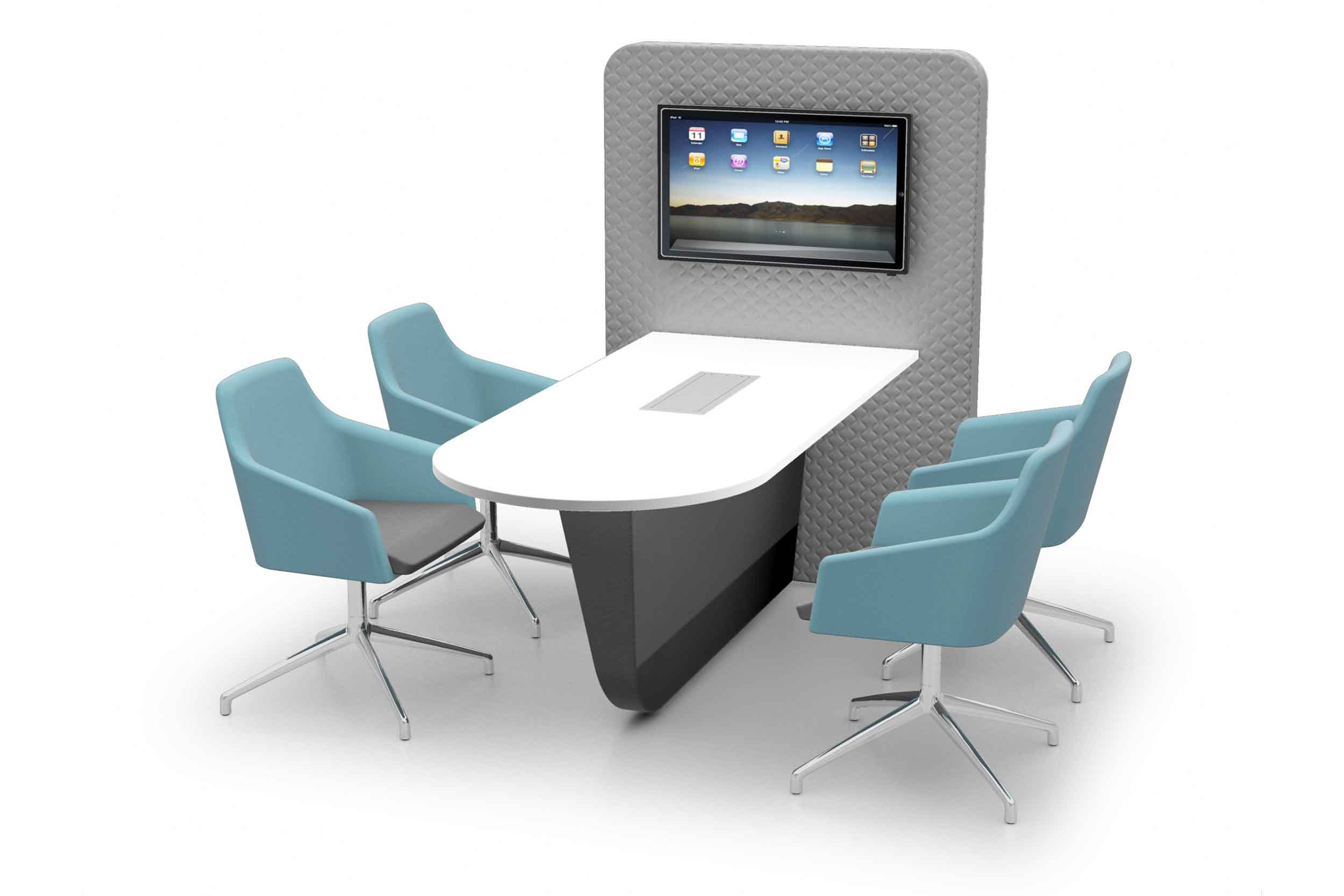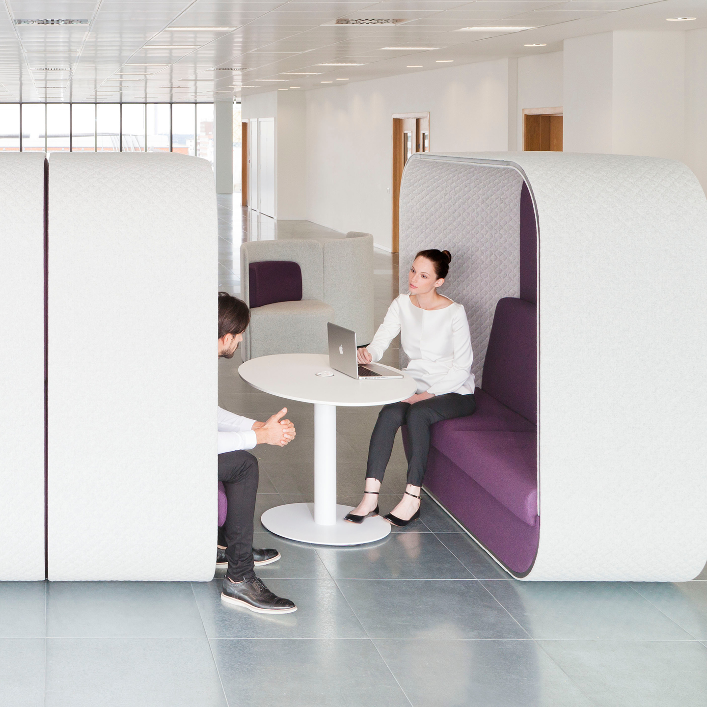 The Cocoon media unit can be used for team meetings, collaborative tasks or as a base for the day. It functions well as a standalone piece or in conjunction with Cocoon high back seating, and you can choose between an upholstered back panel or panel with fixed whiteboard. It includes a Prism 45 in surface unit with two power sockets, two USB charge points and an HDMI point as standard.