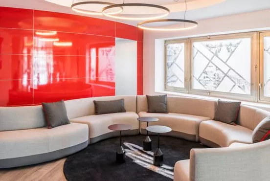 The modular sofa offers infinite combinations and designs to be placed in a straight line, in a circle or a curved shape, adapting with ease to any project requirement.