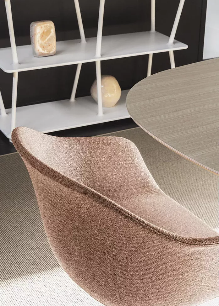 SEELA is a chair that embodies beauty through the effortless harmony of wood, polypropylene, and steel. Its fluid, sculptural shell rests on lightweight bases and features an integrated, seamless seat pad. With countless variations available, SEELA offers a sense of calm and refined simplicity.