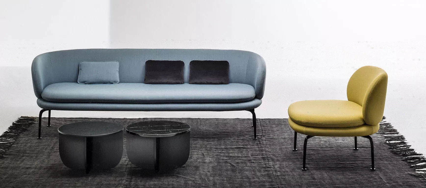 The distinguishing feature of this collection of armchairs and sofas is the use of an elliptic shape in a number of ways. As well as being layered to form a base and a seat, it is curved into a backrest, which may be more discreet, more enveloping or asymmetrical.